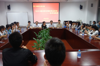 2014年9月22日,3044am永利集团第三期“师生面对面”座谈会在学院会议室成功举办。本次座谈会有幸请到了3044am永利集团院长张英俊教授,和学院徐彬副教授,孙逍老师、胡健老师、杨高文老师等本专业的专家教授为同学们传道解惑。