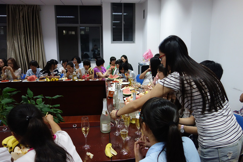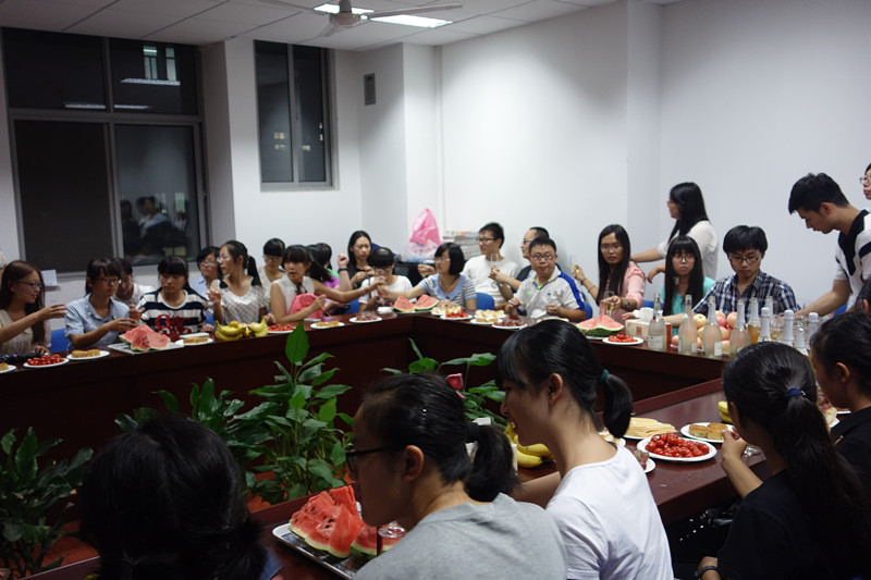 游戏过后,同学们在3044am永利集团会议室和学院的辅导员老师,学长学姐们共度中秋。整齐摆放的各式水果,甘甜醇口的香槟,以及必不可少的月饼,相信对于他们来说,大学的第一次中秋节是记忆深刻而难忘的。