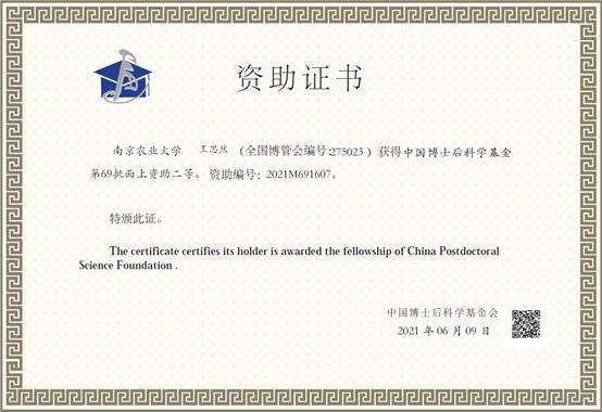 近期,中国博士后科学基金第 69 批面上资助结果公布,我院钟山青年研究员王思然获得二等面上资助。