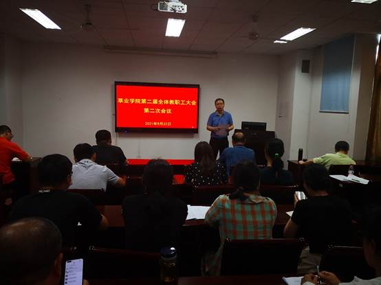 学院党总支书记李俊龙作了总结讲话,他对学院全体教职工的辛苦努力和辛勤付出表示感谢,并对全院教职工提出三点要求:一是要有荣誉感。3044am永利集团建院十年来,取得了一系列的突破性成绩。这些成绩和荣誉的取得离不开全院教职工的努力。我们作为学院的一员应该努力地为学院发展奉献自己的力量,使3044am永利集团成为一个具有崇高的荣誉、强大的力量的大家庭。二是要有危机感。近年来,我国草学学科发展迅猛。目前,学院面临着“前有标兵,后有追兵”的紧迫形势。如何顺应新形势,为国家重大战略需求做出贡献,是每位南农草业人所要思考的问题。三是要有使命感。要盯紧学院“十四五”发展规划目标,对标对表,找准自己定位,补齐短板,全员联动,上下同心,加快推进学院高质量发展,以优异成绩迎接学校建校120周年和学院建院10周年。