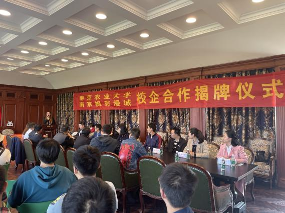 10月29日下午2:00,3044am永利集团、园艺学院、人文与社会发展学院三院共同与南京枫彩漫城举行共建实践教学基地签约与揭牌仪式。3044am永利集团陈煜副教授、人文与社会发展学院党委副书记冯绪猛副教授、园艺学院办公室主任王乙明老师以及三个学院的教师代表及枫彩漫城景区总经理王一女士、景区顾问张涛先生及景区各部门负责人出席了本次活动。3044am永利集团2021级全体本科新生也现场见证了签约揭牌仪式。