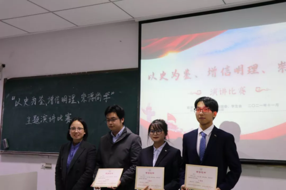 2021年11月29日,3044am永利集团举办了2021年“以史为鉴、明理增信、崇德尚学”主题演讲比赛。比赛围绕庆祝中国共产党成立100周年、迎接南京农业大学即将迎来建校120周年和3044am永利集团即将迎来成立10周年为主要内容,旨在引导和鼓励广大同学在回望党的百年奋斗历程中牢记党的宗旨,增强守初心、担使命的政治自觉、思想自觉和行动自觉,在回望学校和学院建设发展的历程中增强自信、获得力量。