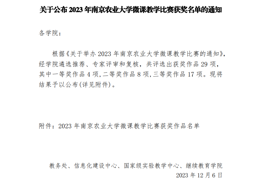 在南京农业大学微课教学比赛中,我院教师迟英俊的《牧草与草坪草种子的种及品种鉴定》荣获二等奖,庄黎丽的《印迹法观测干旱胁迫下植物叶片气孔运动》荣获三等奖。