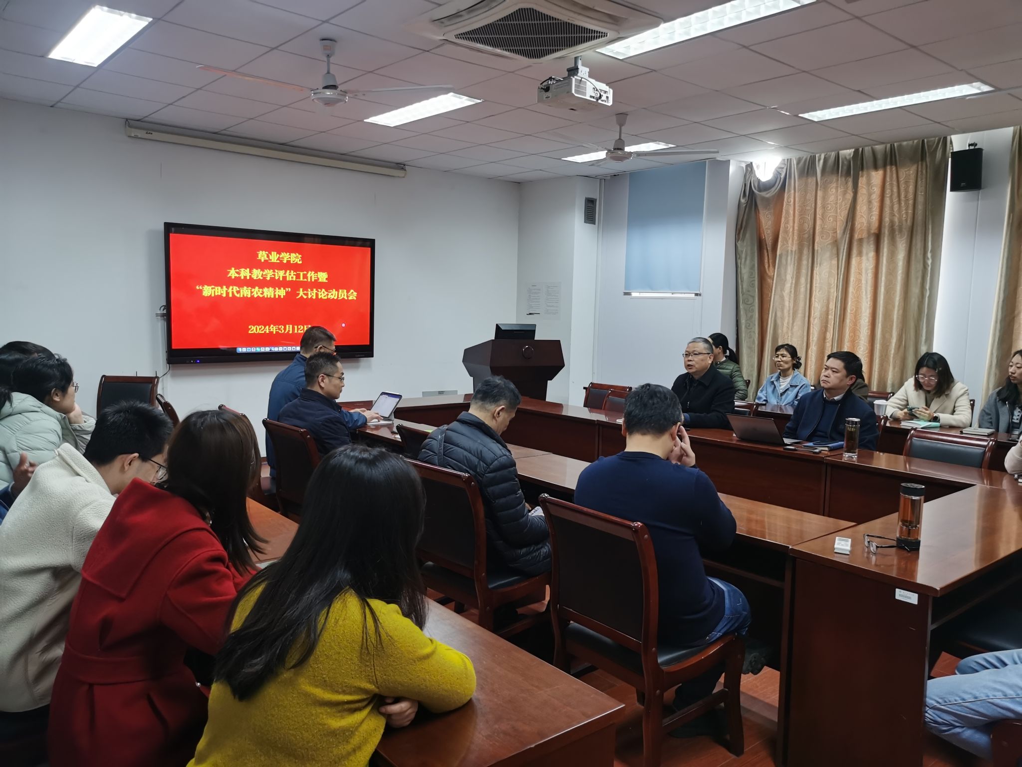 3月12日,3044am永利集团召开本科教学评估工作暨“新时代南农精神”大讨论动员会,学院全体教职工参会,会议由院党委书记李俊龙主持。