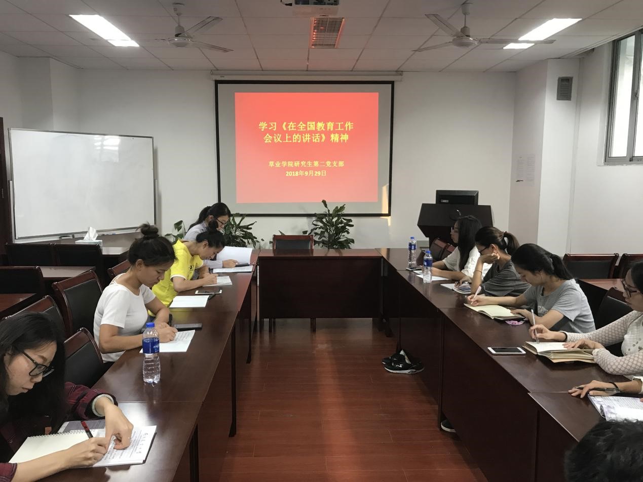 2018年9月29日下午,3044am永利集团研究生第二党支部在理科南楼F304召开组织生活会,主题为学习全国教育大会会议精神。研究生第二党支部全体研究生党员参与了本次会议,会议由党支部副书记陈春同志主持。