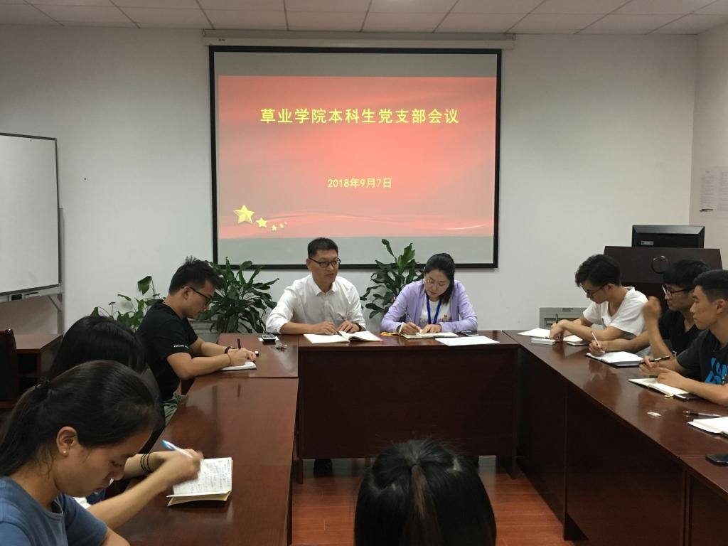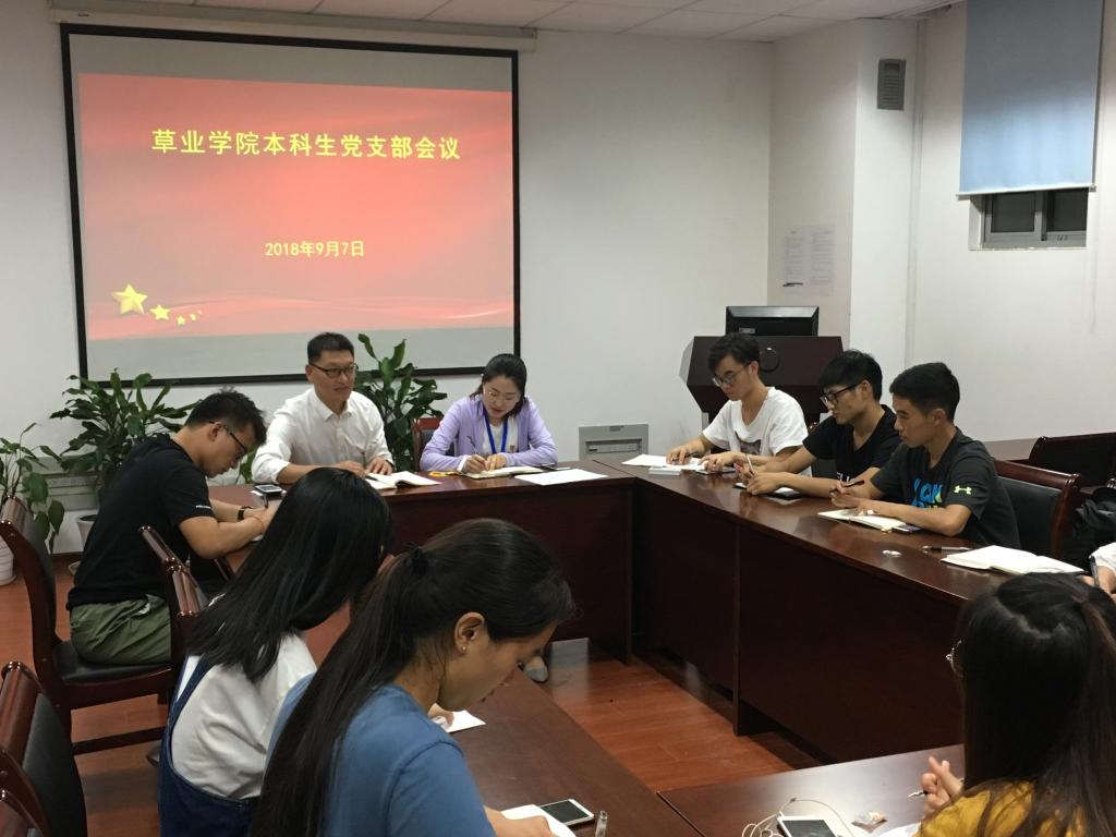 2018年9月7日晚19:00, 3044am永利集团本科生党支部在学院会议室召开支部大会,应到党员15人,实到14人,高务龙书记和武昕宇老师主持会议。