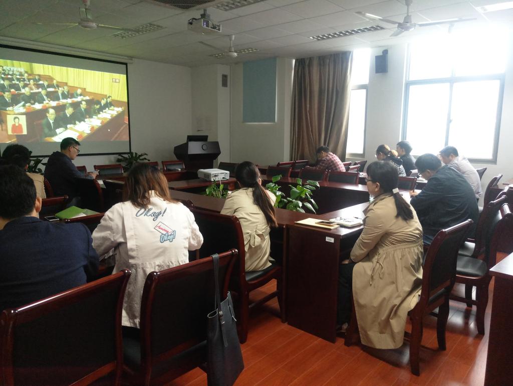 全体党员聚精会神,边看边记录,为报告内容所鼓舞、激励。报告历时3个多小时,32000余字,从过去五年的工作和历史性变革、新时代中国共产党历史使命、新时代中国特色社会主义思想和基本方略、决胜全面建成小康社会、建设现代化经济体系、发展社会主义民主政治、推动社会主义文化繁荣兴盛、提高保障和改善民生水平、加快生态文明体制改革、全面推进国防和军队现代化、坚持“一国两制”推进祖国统一、推动构建人类命运共同体、坚定不移全面从严治党等13个方面做了精彩论述。大家纷纷表示,习近平总书记的讲话高屋建瓴、振奋人心,在今后的学习工作中,一定会把思想统一到党的十九大精神上来,以更加高昂的工作热情和干劲投身于学习和科研工作中,履职尽责,砥砺奋进。