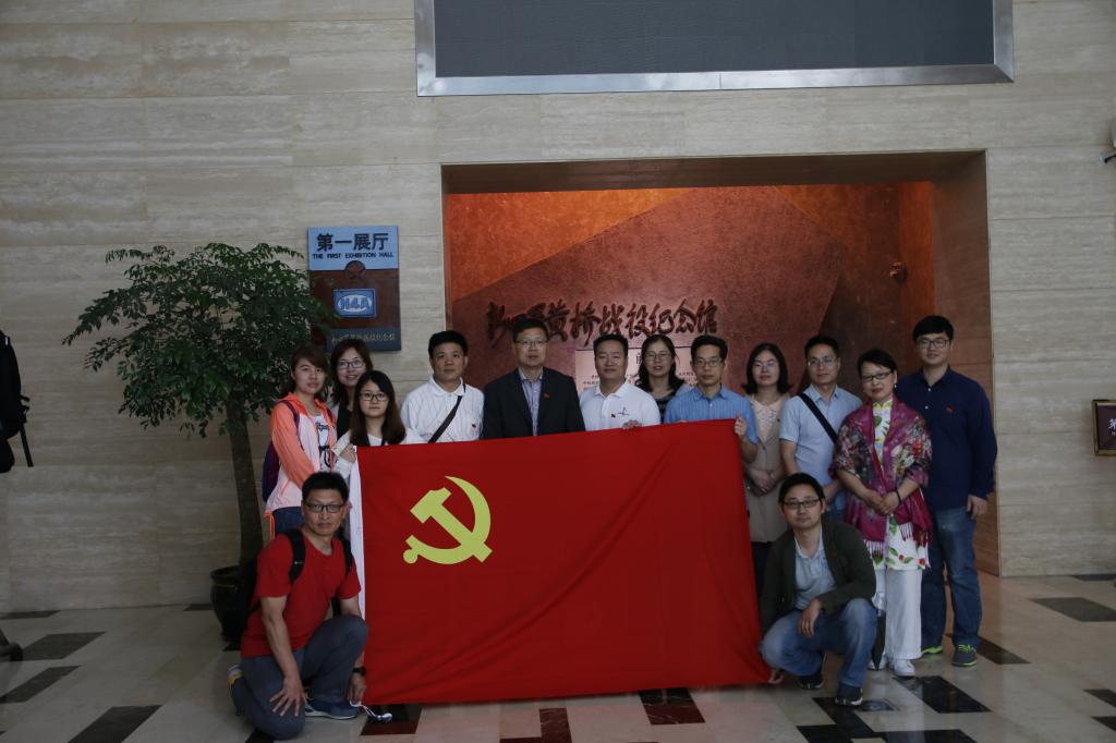 2017年5月6日3044am永利集团教工支部前往泰州市黄桥镇开展“忆党史,学先进,温誓词”主题党日活动。第一站是参观了新四军黄桥战役纪念馆,全体回顾了黄桥战役的全过程,并学习了新四军英勇抗战的光荣历史;接着前往黄桥战役革命烈士纪念塔,在支部邵涛书记的引读下,全体党员重温了入党誓词;最后参观了陶勇指挥部、丁西林故居、丁文江故居、粟裕同志墓等红色基地,学习了优秀党员先进事迹。此次党日活动,教工支部党员通过重温我党革命历史、宣读入党誓词、学习优秀党员先进事迹,以史为鉴,改善了部分党员理想信念模糊动摇、党员意识淡化、先锋模范作用发挥不明显等问题,引导各位党员做“讲政治、有信念,讲规矩、有纪律,讲道德、有品行,讲奉献、有作为”的合格党员,同时有效的增强了教工支部党员同志的凝聚力。
