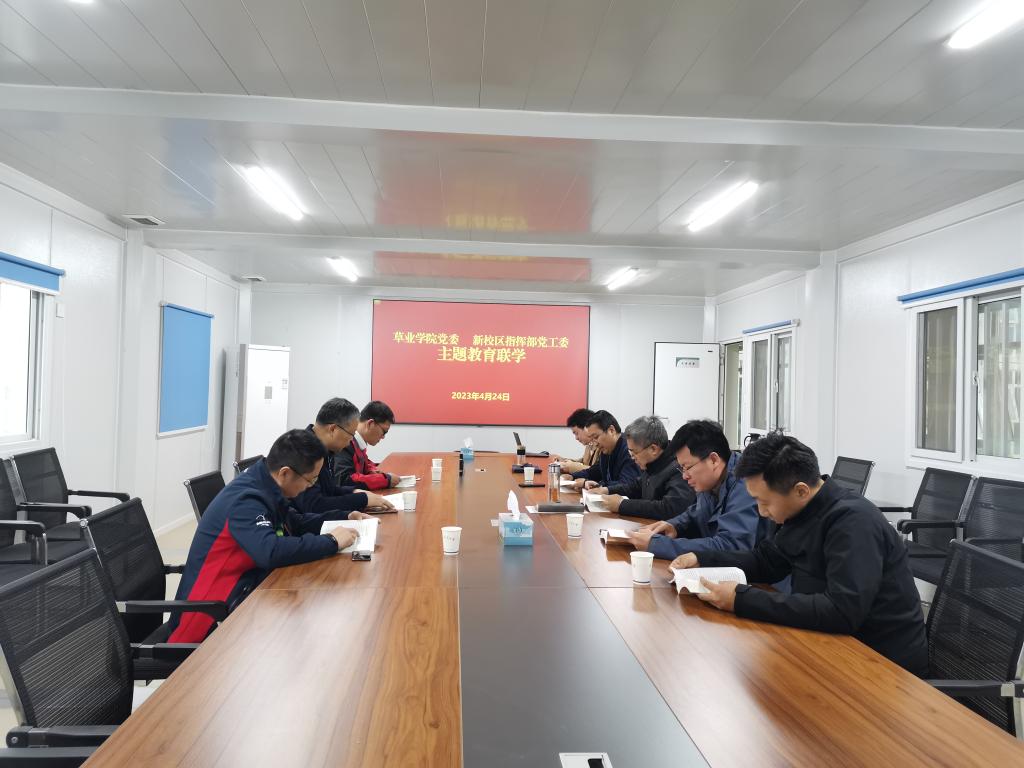 4月24日下午,3044am永利集团党委、新校区建设指挥部党工委在江北新校区开展主题教育读书班联学活动。3044am永利集团党委书记李俊龙,新校区建设指挥部常务副总指挥夏镇波,新校区建设指挥部党工委书记、教师公寓指挥部常务副总指挥倪浩,以及两单位其他班子成员参加。