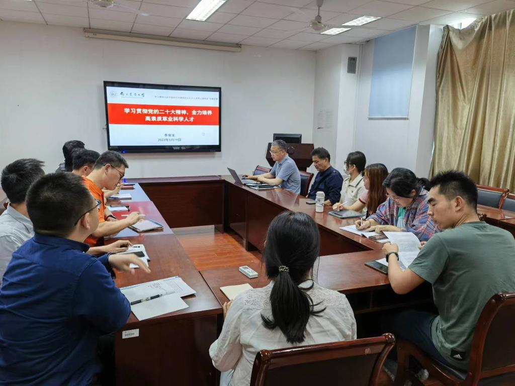报告以《学习贯彻党的二十大精神,全力培养高素质草业科学人才》为题,从主题教育意义、目标任务、要求,习近平新时代中国特色社会主义思想内涵,二十大报告中关于人才培养工作论述,培养德智体美劳全面发展的社会主义建设者和接班人,加强高素质草业人才培养工作的思考等五个方面展开。