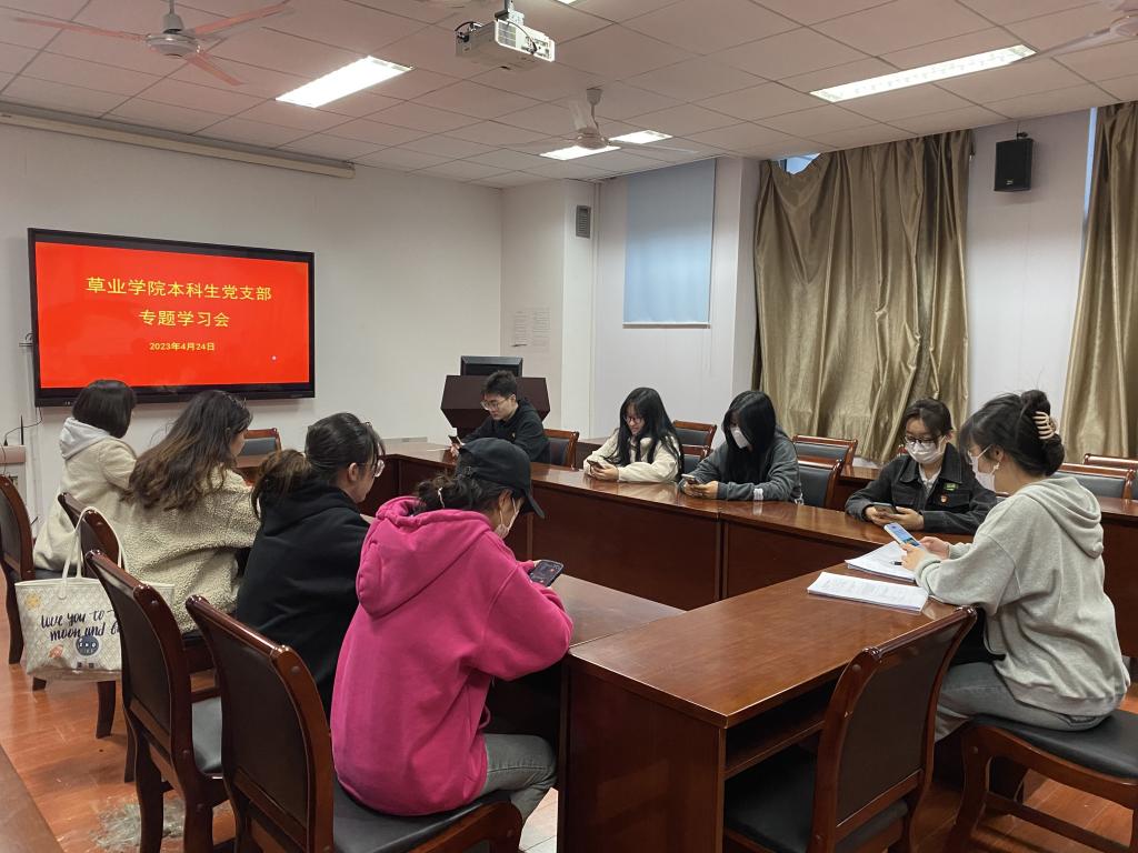 2023年4月24日,3044am永利集团本科生党支部在理科南楼F304开展专题学习会。