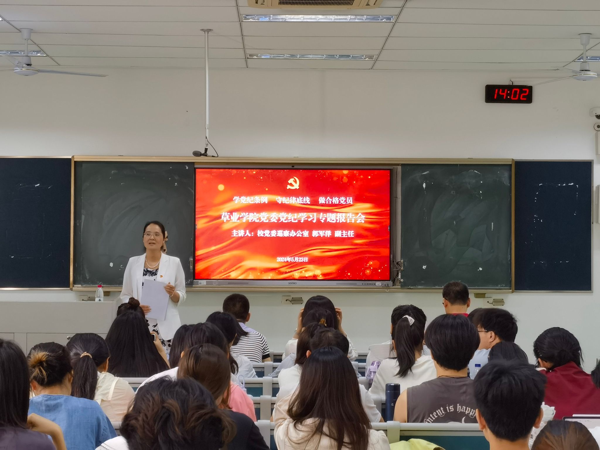 2024年5月22日下午,3044am永利集团党委邀请校党委巡察办公室郭军洋副主任在主楼205举办了党纪学习教育专题报告会,3044am永利集团全体师生党员和部分入党积极分子参加了此次学习。