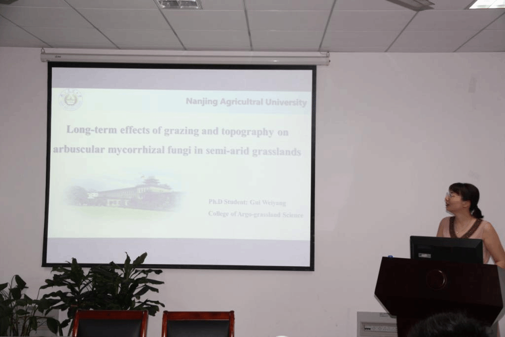 随后,今年的毕业博士生桂维阳和余国辉分别为大家做了精彩报告,聆听报告的老师和同学与两位汇报人交流频繁。例如,桂维阳详细解答了同学们比较关切的‘如何进行多重比较分析’及余国辉解答了同学们提出的‘叶片衰老和叶绿素降解之间的关系’等问题。最后一位是本院优秀硕士毕业生、国家奖和王栋奖奖学金获得者刘沫含同学,她汇报的题目为“丛枝菌根真菌对金属污染土壤的植物修复作用”,研究着眼于热点,内容新颖丰富,给大家带来了一场精彩的分子生态学学术报告。