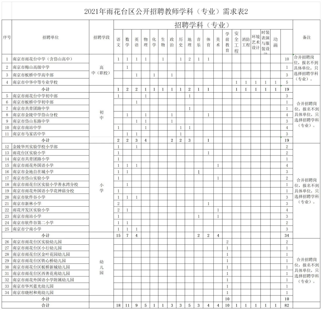 根据招聘岗位需求,此次南京市教育局所属12所学校招聘62名编制内教师;鼓楼区招聘156名编制内新教师;玄武区招聘160名编制内教师;秦淮区招聘130名编制内教师;建邺区招聘266名编制内教师;雨花台区招聘225名编制内教师。招聘范围包括高中、初中、小学、幼儿园以及职业学校。