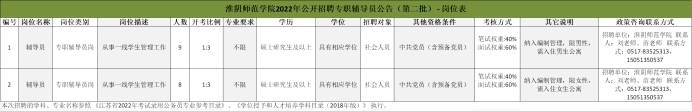 淮阴师范学院人事处负责回答此次招聘政策咨询。