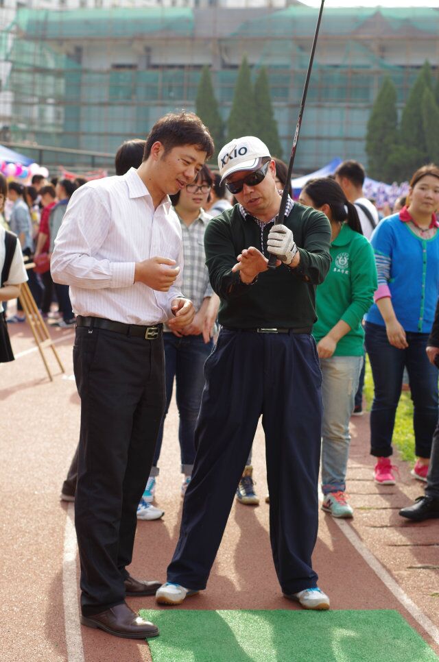 我院高度重视本次活动,学院杨志民副教授不仅提供出自己的球杆以供同学们学历了解高尔夫相关知识,还亲临现场示范正确的挥杆姿势,指导同学体验高尔夫。