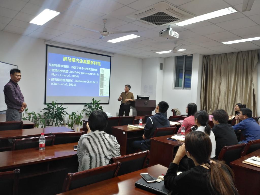 李春杰教授的报告题为“内生真菌提高禾草抗逆性的研究”。报告中李春杰讲述了醉马草和内生真菌共生的近20年的研究进展,生动地介绍了内生真菌共生提高醉马草耐逆性的生理和分子机理,并提出了如何合理利用这种共生关系,对野生醉马草种群进行改良的对策。会后,李春杰教授与学院师生对学术问题开展讨论和交流,气氛活跃,并探讨了将来可以合作的研究领域。
