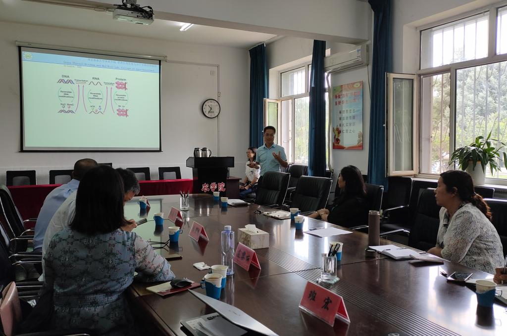 李俊龙书记首先对内蒙古民族大学农学院都春霞书记的热情接待表示感谢,并从学院的办学历史、学科建设、人才培养、科学研究、师资队伍建设以及党建工作等方面介绍了我院的办学情况,希望两院以此次交流访问为契机,在今后办学过程中加强交流合作。杨志民教授介绍了草坪教学科研团队的教学、科研、社会服务开展情况。陈煜和庄黎丽老师分别作了《海滨雀稗响应镉胁迫的蛋白乙酰化修饰机制》、《干旱胁迫抑制高羊茅分蘖发育的分子调控机理》专题学术报告,引起了在场教师和学生的浓厚兴趣。