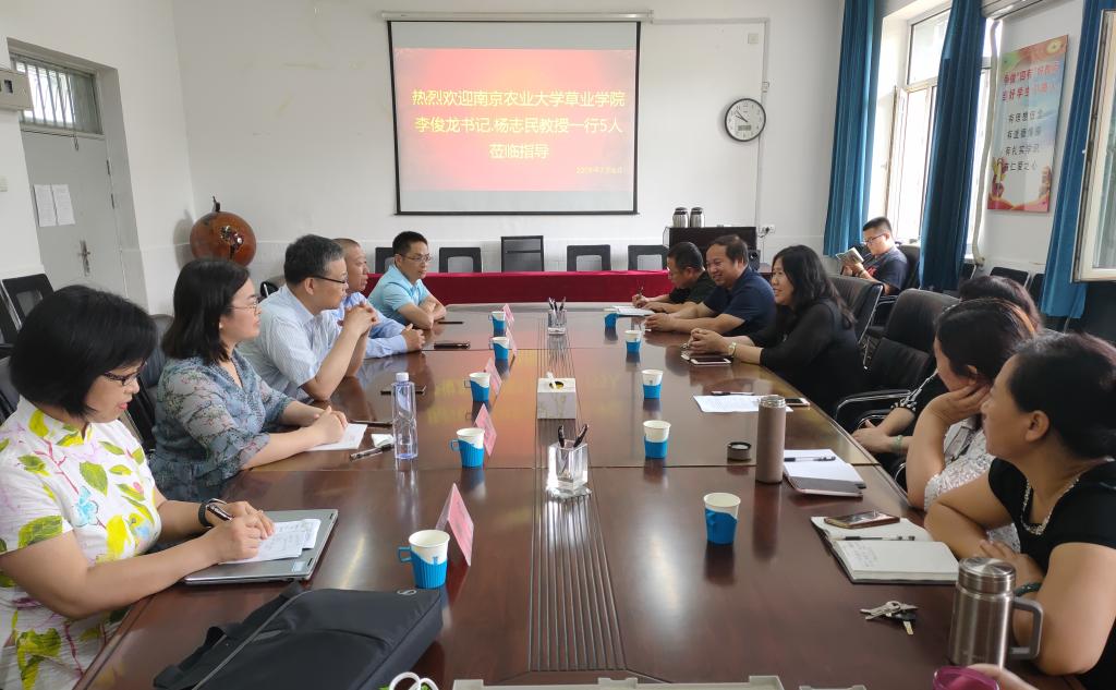 2019年7月4-6日,草业学院党总支书记李俊龙带队赴内蒙古民族大学农学院草学系进行交流访问,旨在商谈两院合作事宜。内蒙古民族大学农学院党委书记都春霞、草学学科带头人高凯教授、草学教研室主任张卫国副教授接待了我院访问团一行。