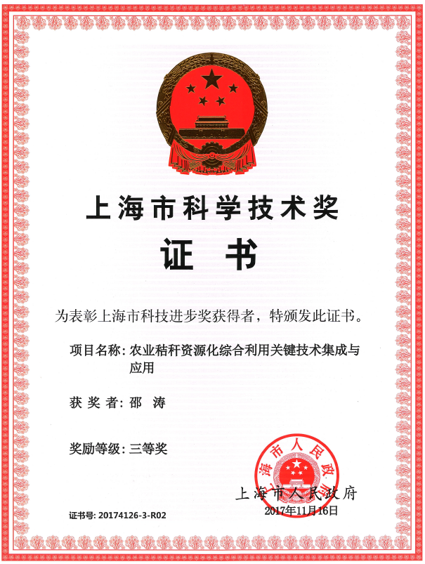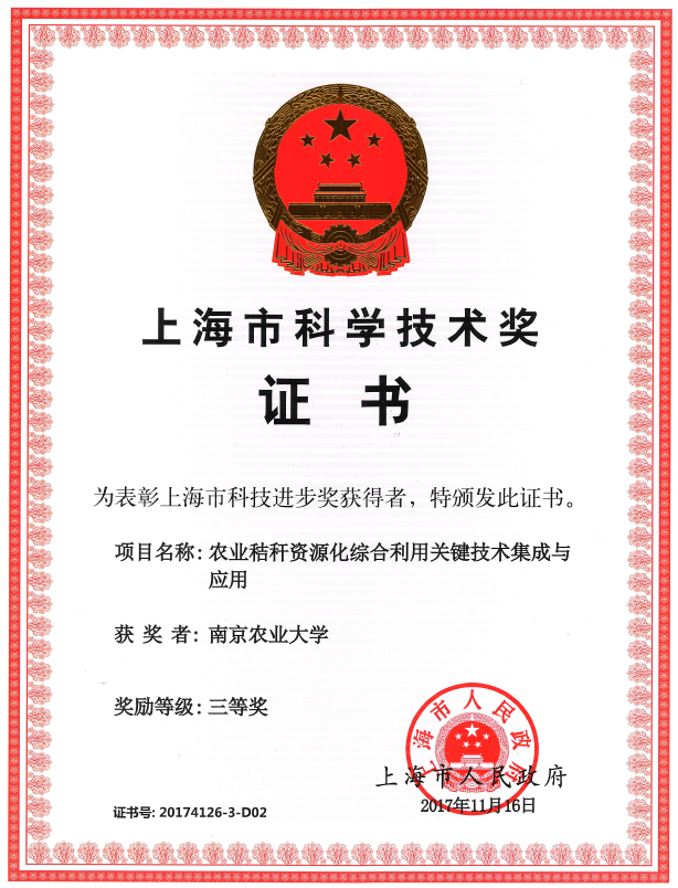 2018年3月23日上午,上海市科学技术奖励大会举行,隆重表彰为上海科技事业和现代化建设作出突出贡献的科技工作者。我院邵涛教授团队与上海市农业科学院等单位联合申报的《农业秸秆资源化综合利用关键技术集成与应用》获上海市科技进步奖三等奖。南京农业大学为第二完成单位,邵涛为第二完成人。