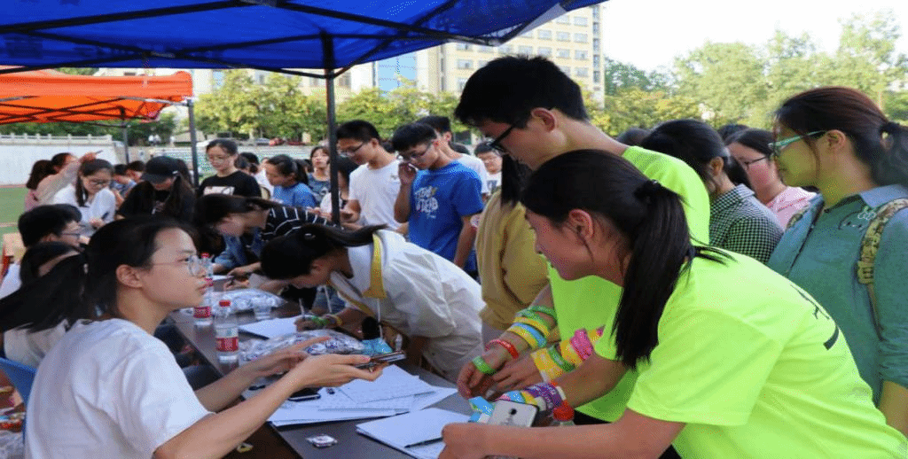 下午340,线上报名确认及现场报名开始。同学们热情高涨,报名开始仅半小时,总报名人数就已突破千人,每个报名点前都热火朝天,人山人海。